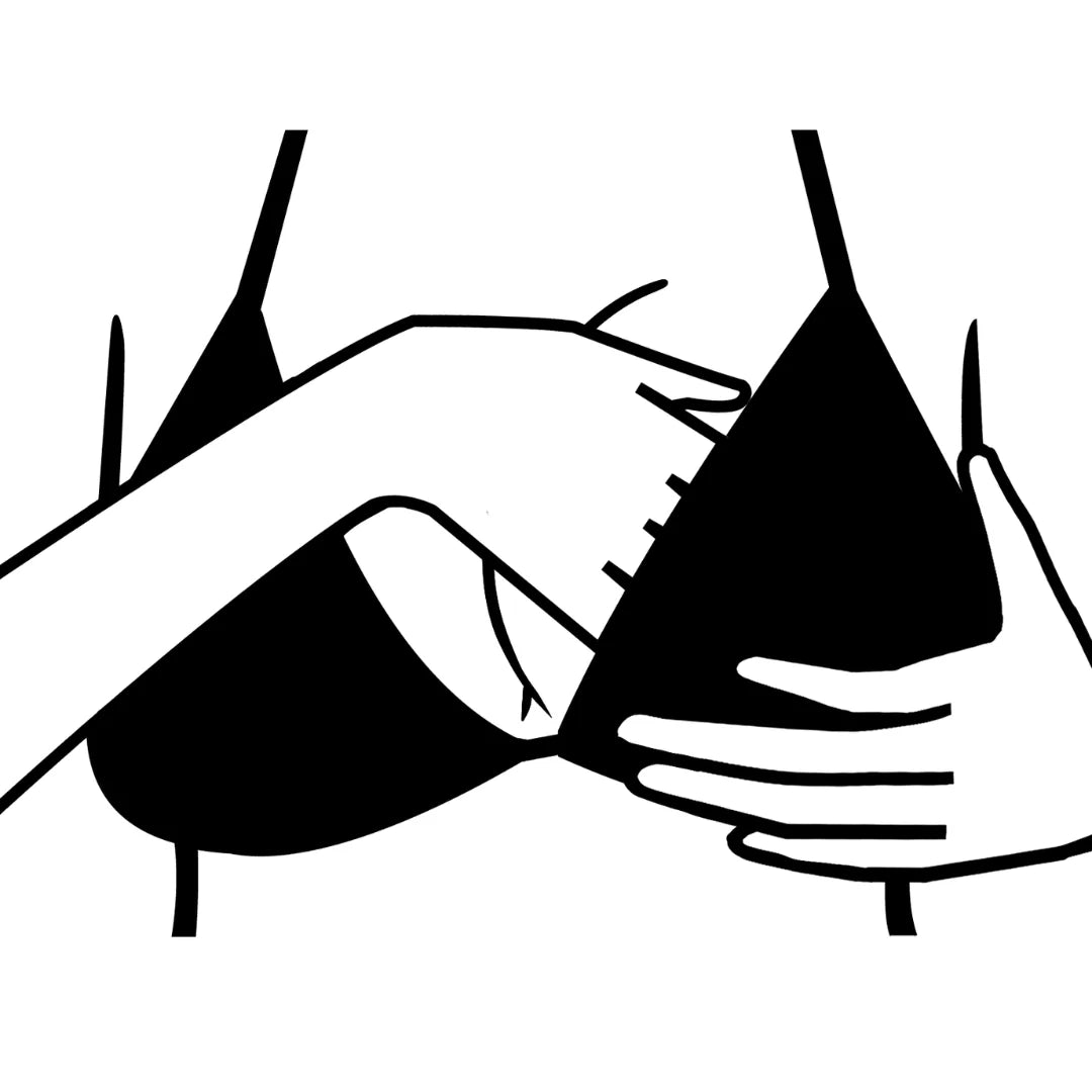Achte darauf, dass die dicke Seite vom Pad unten ist und die Aussparung auf der Brustwarze liegt. (Es gibt ein linkes und ein rechtes Pad.)
