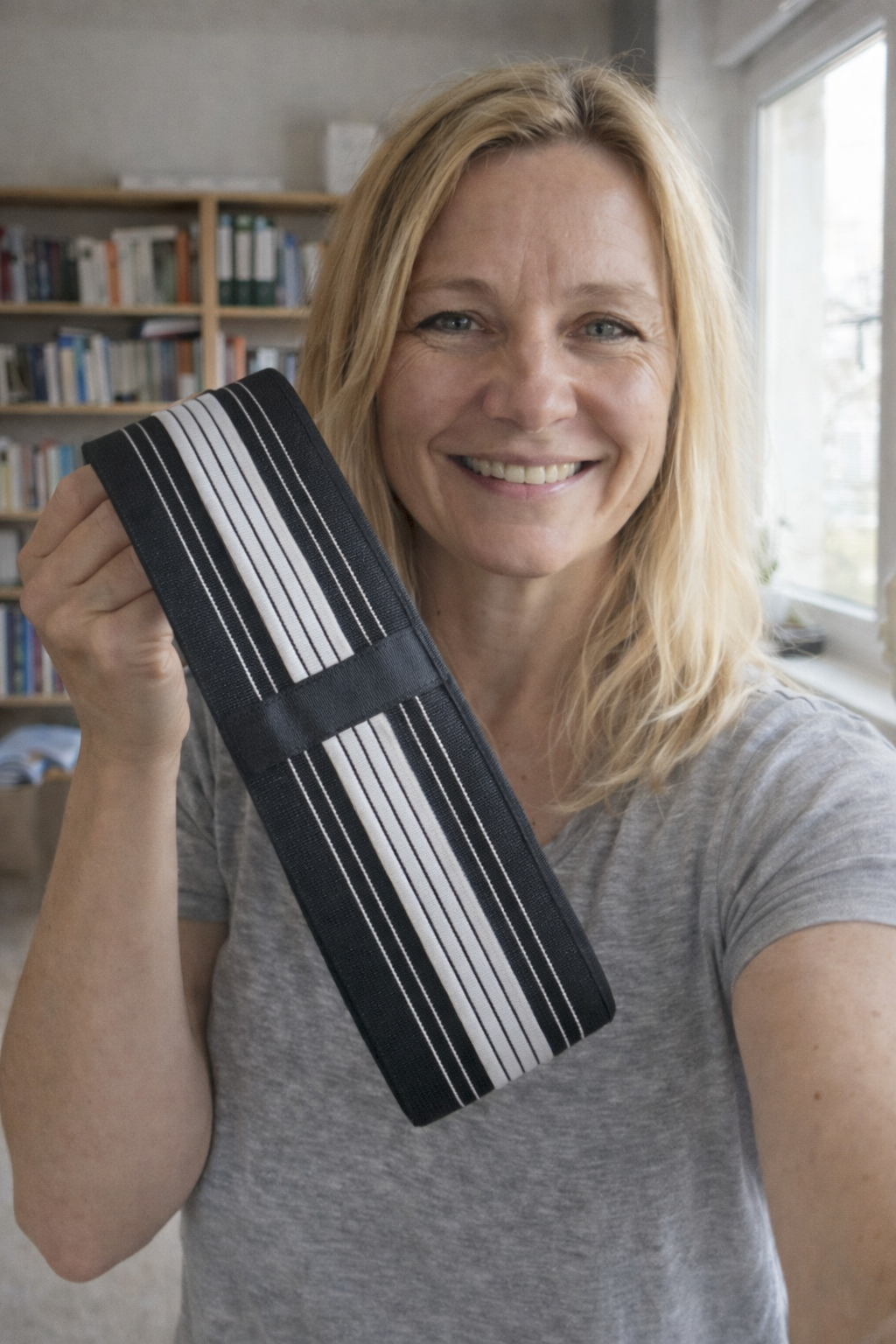 Der Gürtel sollte eng anliegen, aber nicht zu fest sitzen, um Unbehagen oder Druckstellen zu vermeiden. Sie sollten sich problemlos bewegen können, ohne dass der Gürtel unangenehm einschneidet, oder verrutscht. Die Festigkeit lässt sich leicht mit den elastischen Spannbändern anpassen.